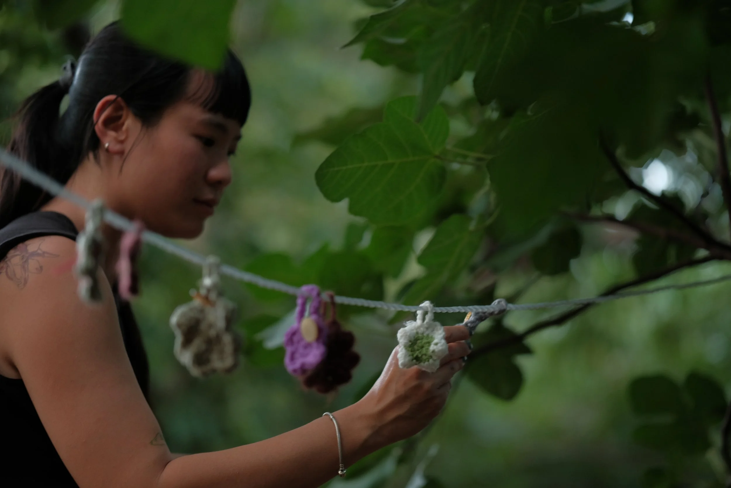 This month, ACR has the privilege of spotlighting Ava Natalia, a textile artist who uses recycled materials and secondhand yarn in their creations. Most recently, they used yarn sourced from ACR in a collaborative arts project created as part of a fellowship. Entitled “Find Your Flower”, participants were instructed to find a crocheted flower that had been strewn across the trees, to which they would be informed of the flower’s “Birth Certificate” that detailed the flower’s time, date, location, and thoughts the artist had while making it. The project was intended to show the importance of craft as a method of sustainability and encourage a more conscious mode of consumption. In addition to textile art, they also sing, sew, draw, and DJ as a way to diversify their creative abilities.