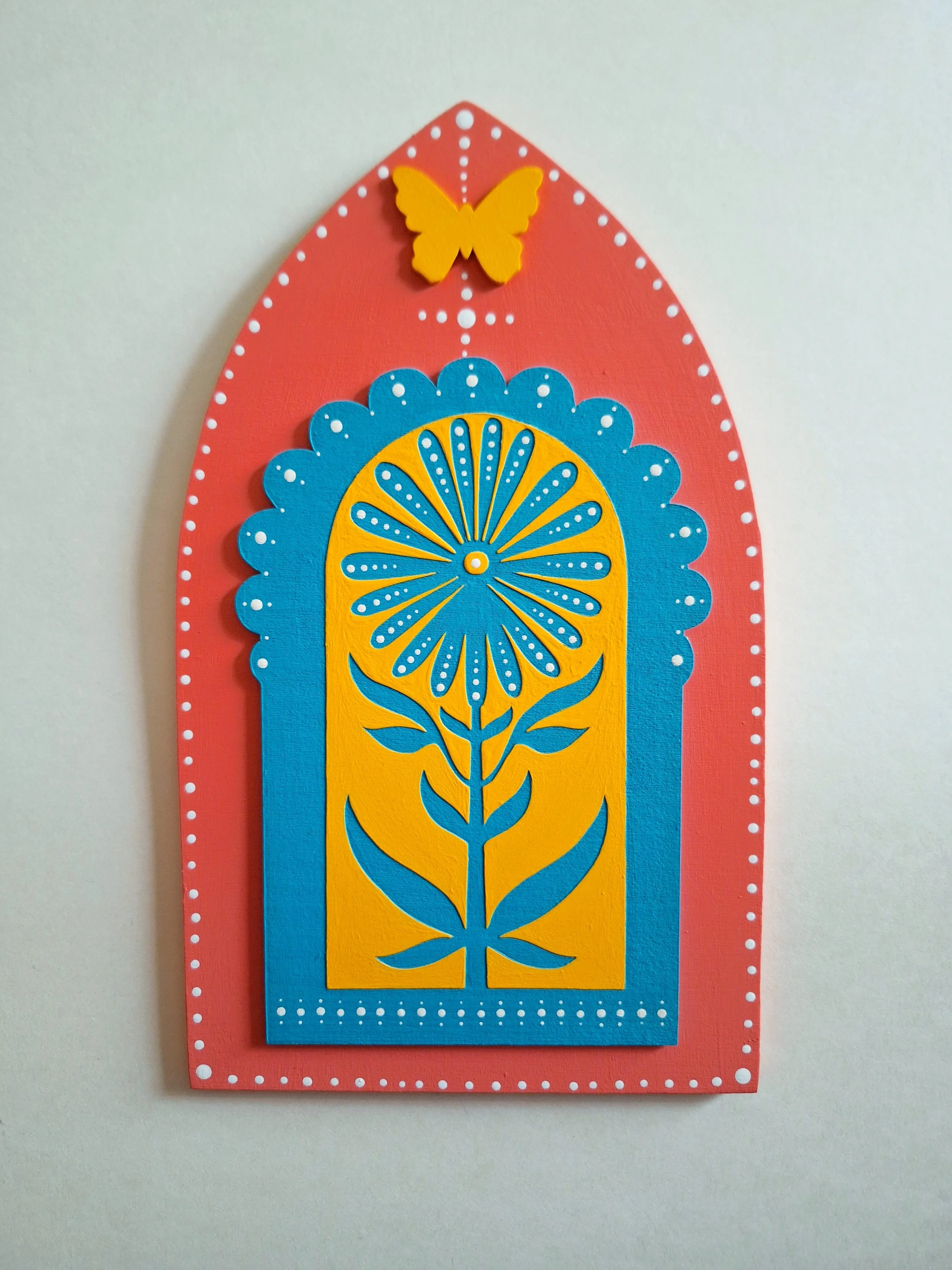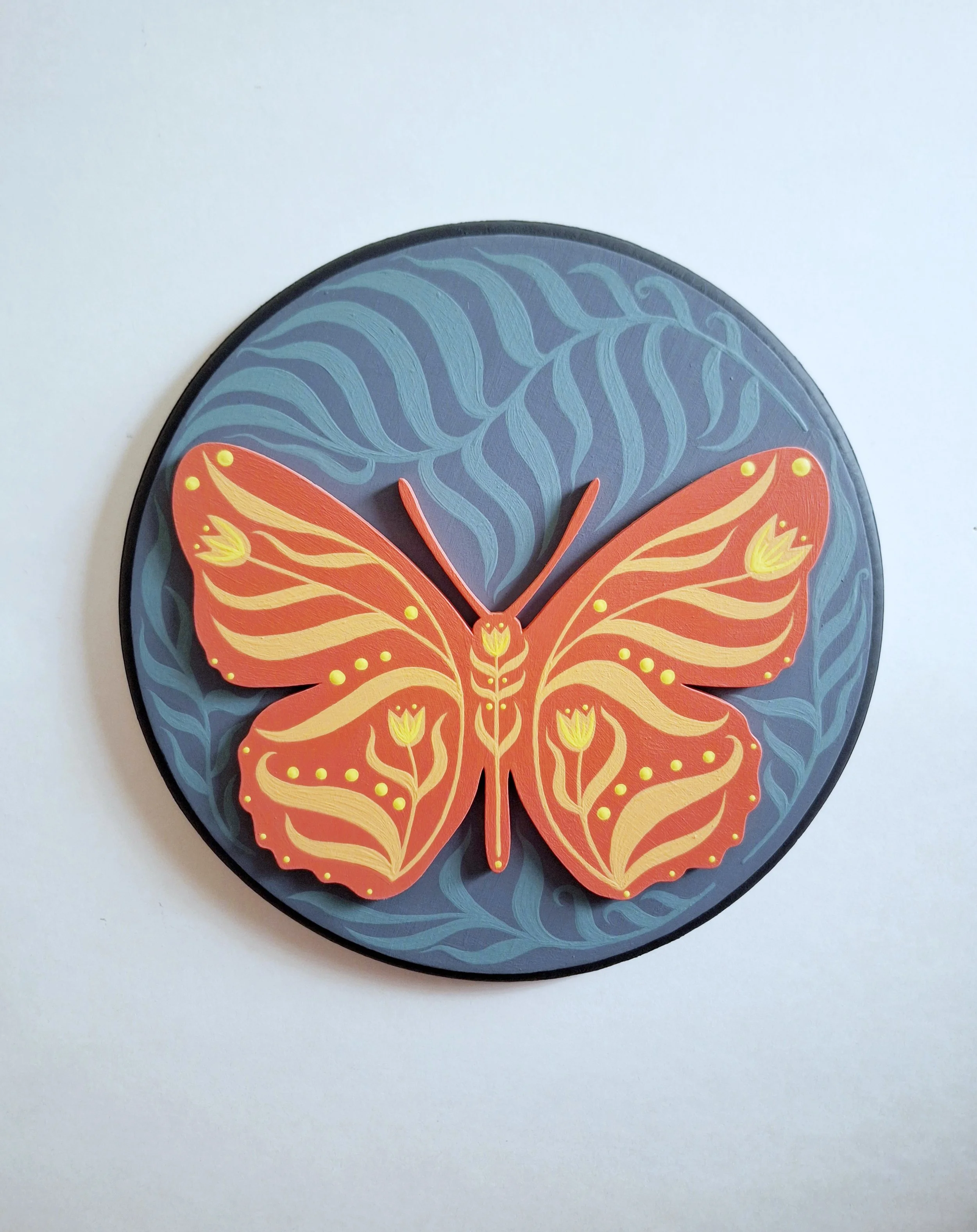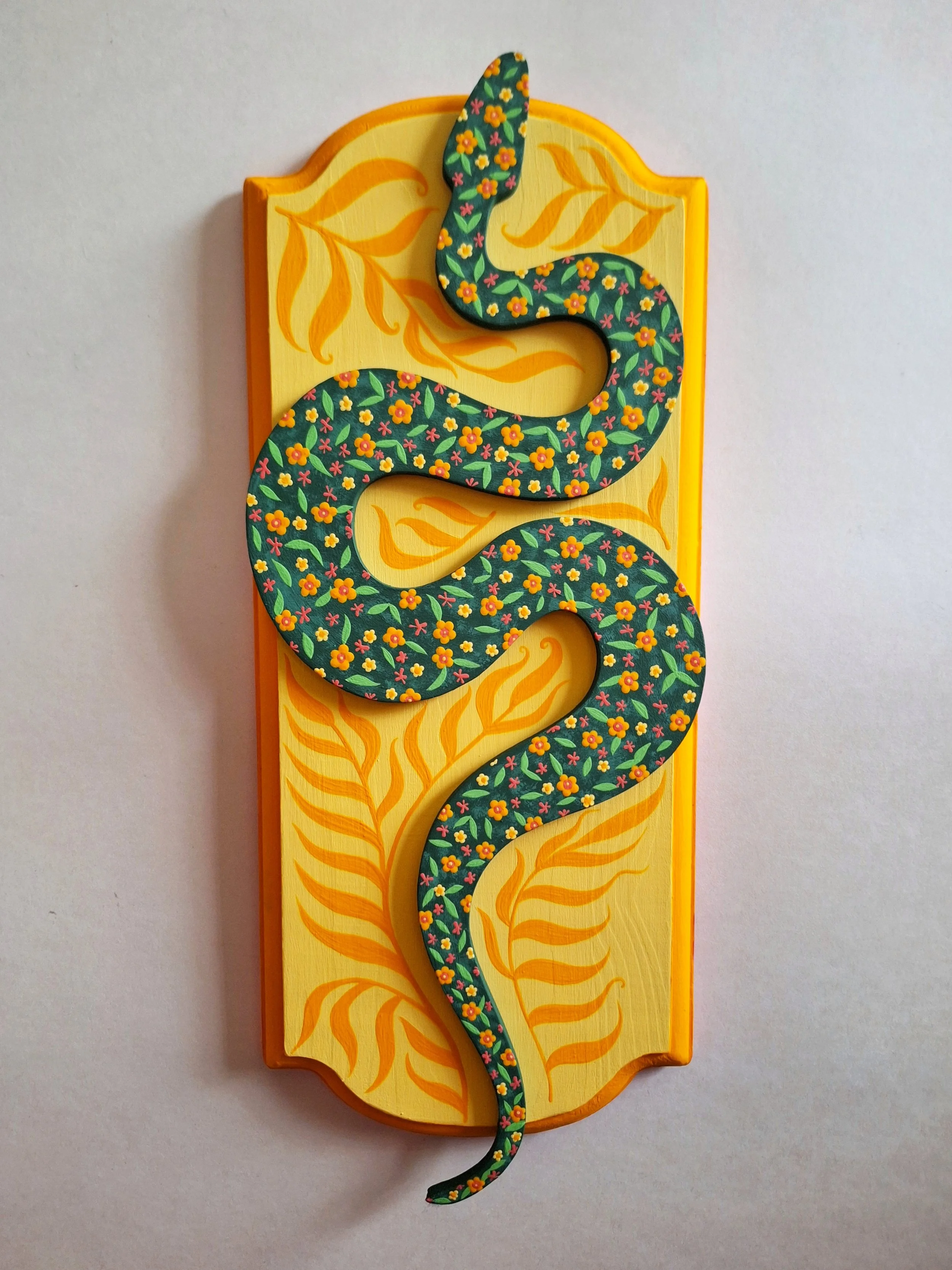 I've been an artist all my life, but I quit teaching preschool 11 years ago to make laser cutting a full time job. Jewelry was my main focus at the beginning and still a major part, but I started cutting large animal shapes from wood and painting them in floral patterns. Thrifted wooden plaques were a perfect base for those shapes, and a couple years ago these mixed media paintings became a larger part of my art career. I've since shown work at Bouldin Creek Cafe a couple times, and I'll been installing a new collection October 1st. I've also shown at Cute Nail Studio, Method Hair, and Cloud Tree Gallery.