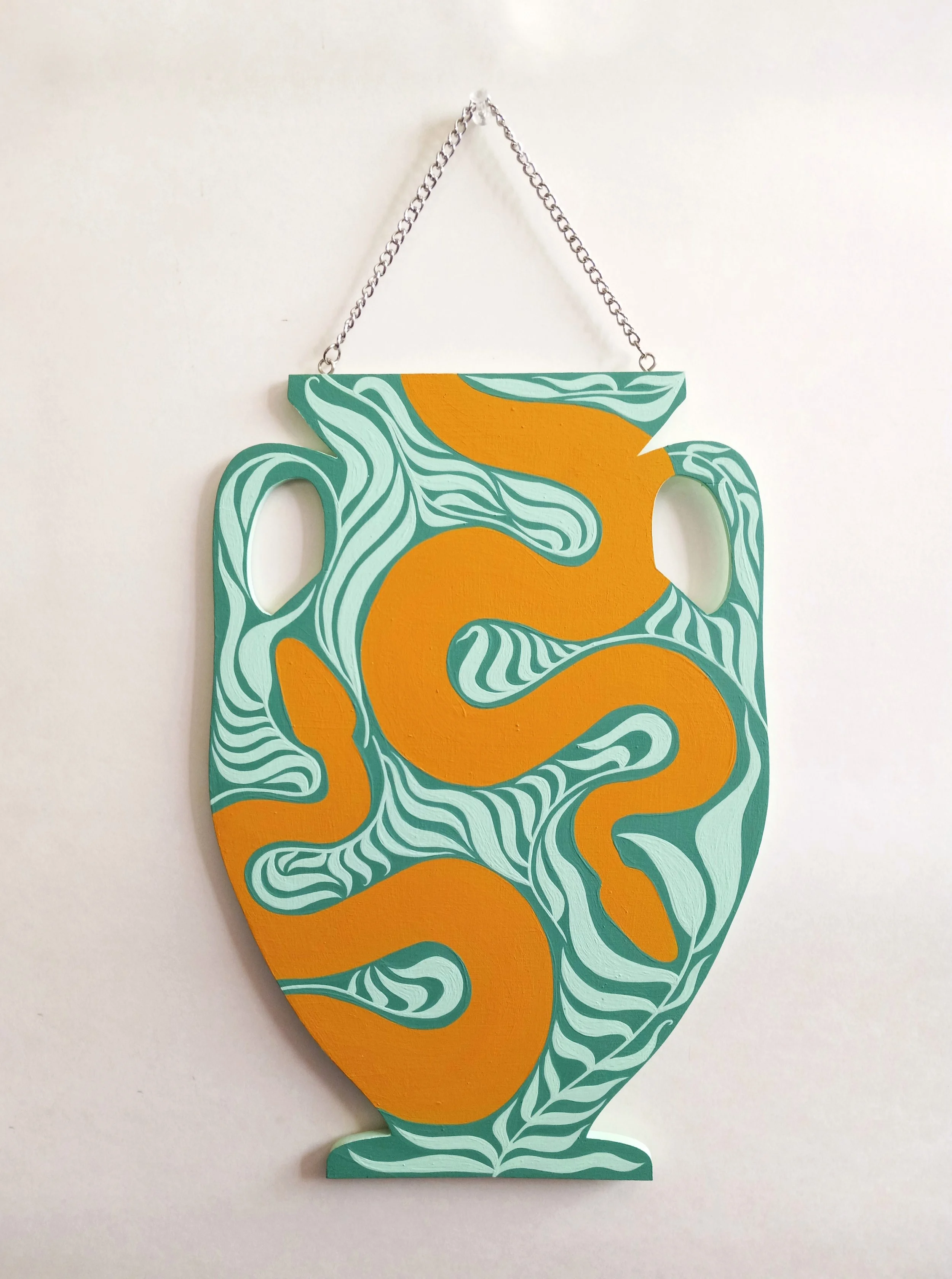 My favorite aspect of creating is getting into the painting flow in my studio. My preferred brushes are nail art brushes, so getting long smooth lines painted and seeing my ideas taking form in pigment is so satisfying.