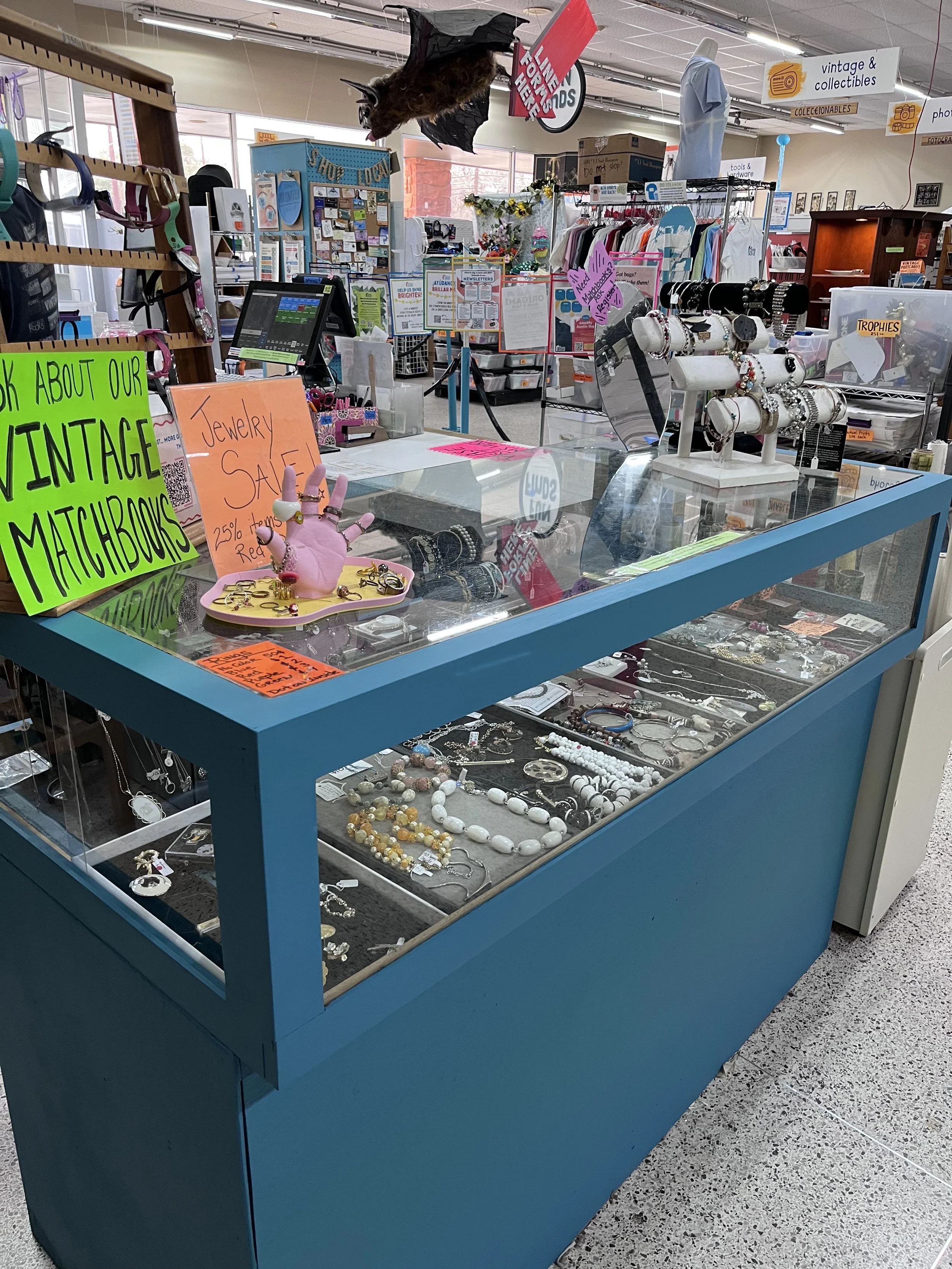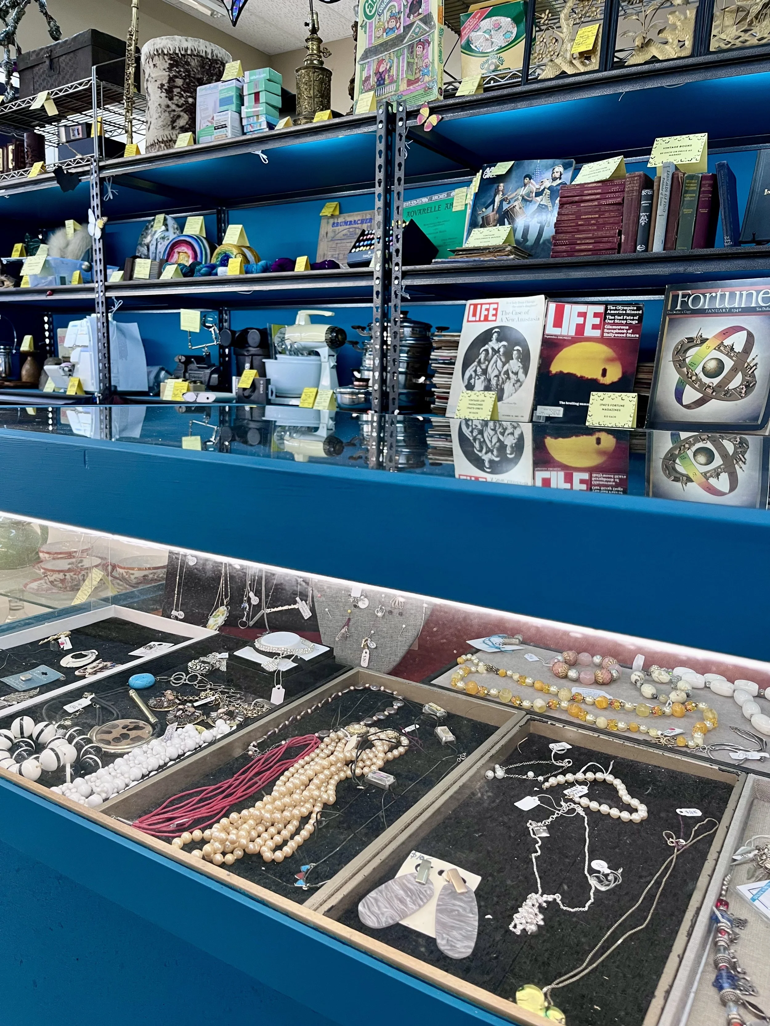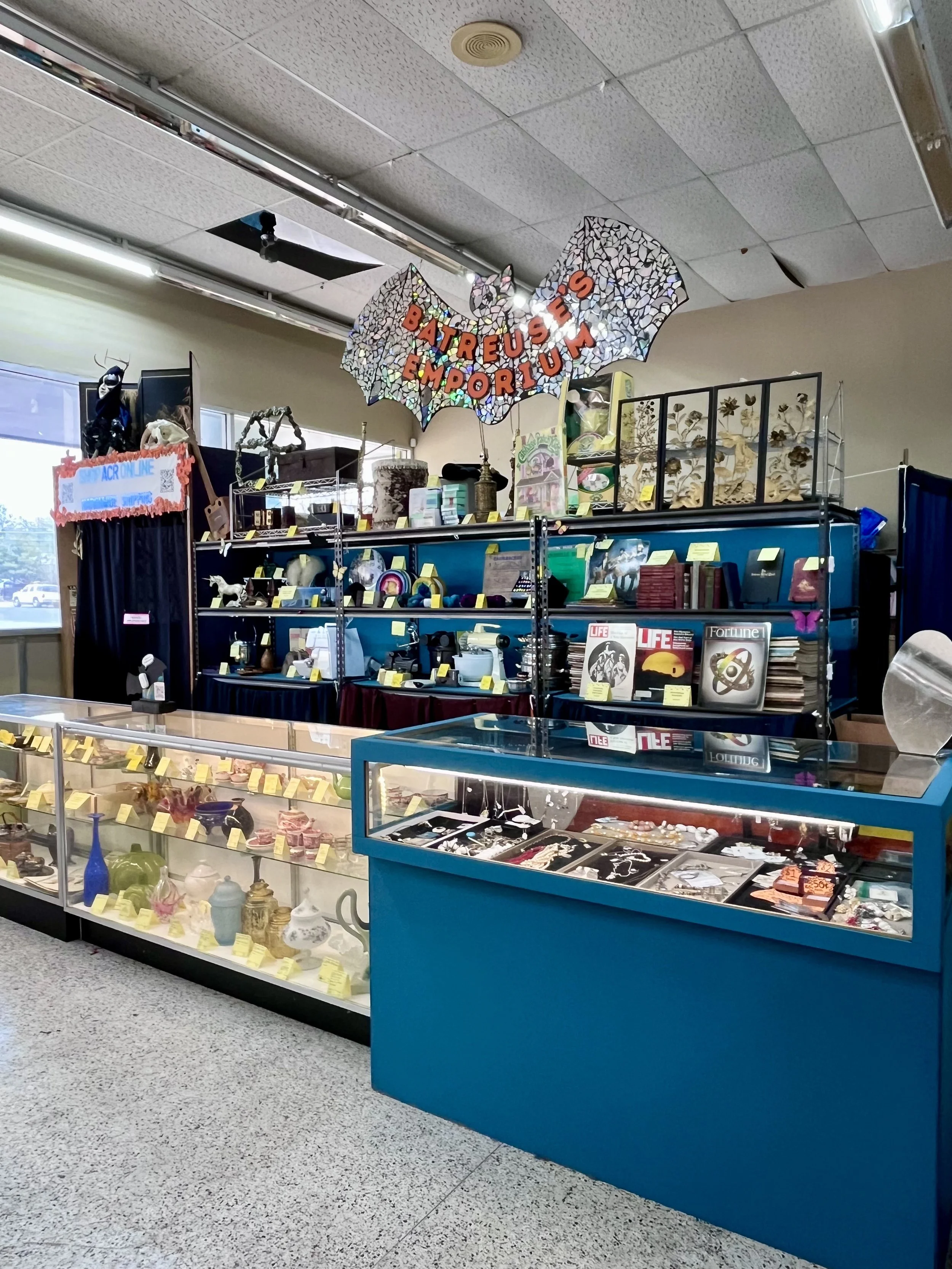 Think: curated treasure hunt. Batreuse’s Emporium will feature a rotating, curated selection of specialty items and rare finds displayed in protective cases. Each item has a yellow card telling you more about the item and its history. Shoppers can ask our staff and volunteers for assistance to take a closer look at any piece that catches their eye. If you love it, you will check out your Emporium treasures at our registers like you would any other in-center purchase.