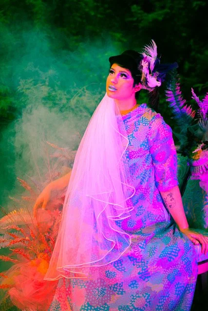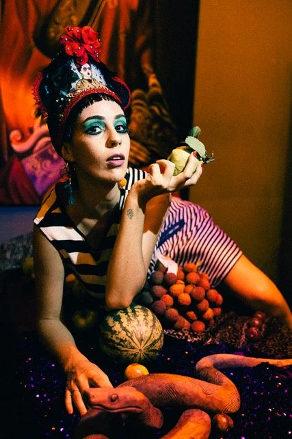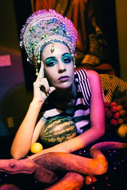 My background is in sculpture & installation art. When I was living in San Francisco, I started performing aerial & the circus arts. Naturally, I was drawn to the costumes and began using costume as a medium of expression.