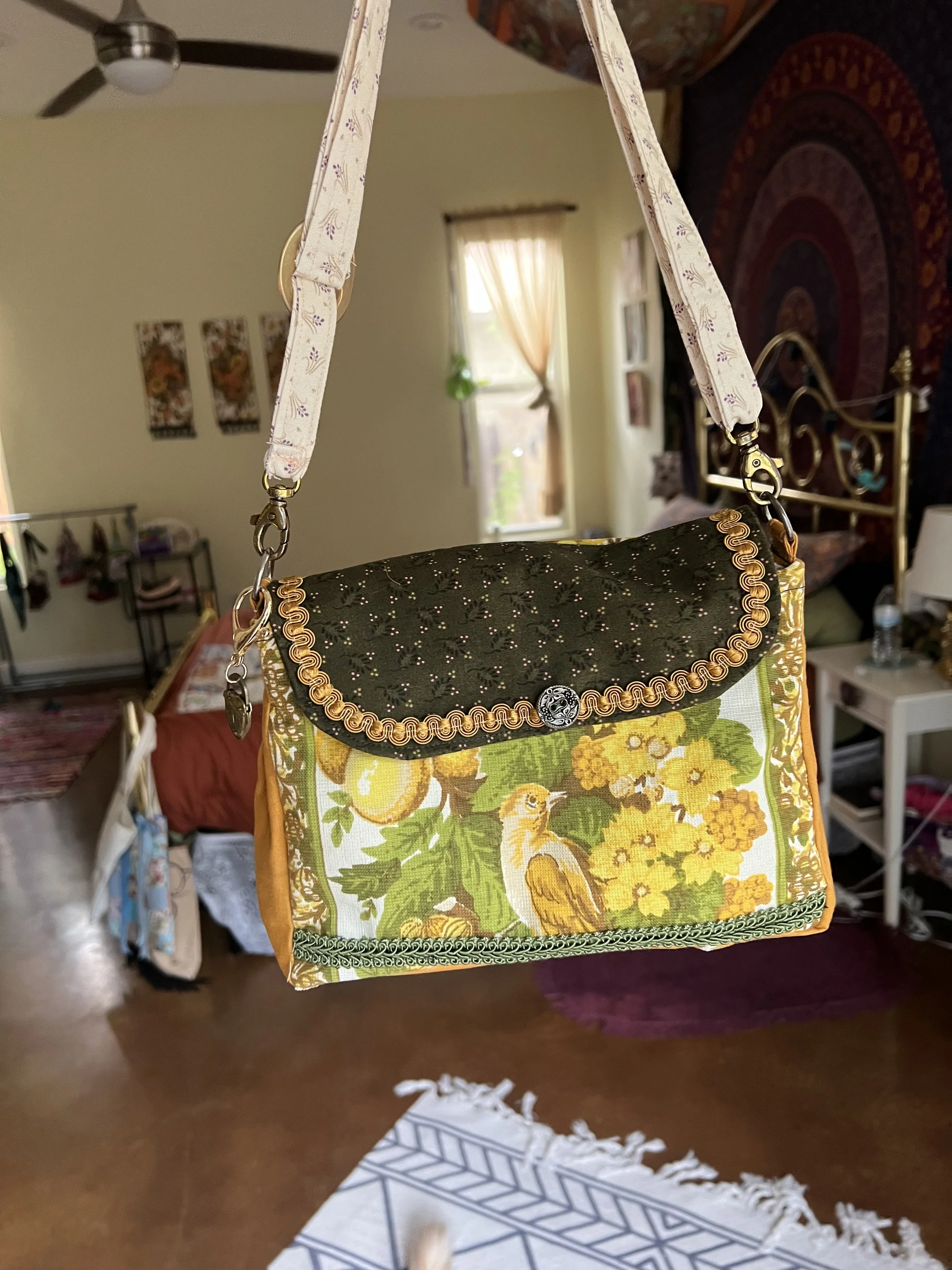 I love sewing. I’ve been making purses and makeup bags in a maximalist style. I keep an eye out for beaded trim and fun buttons to add embellishment to my bags.