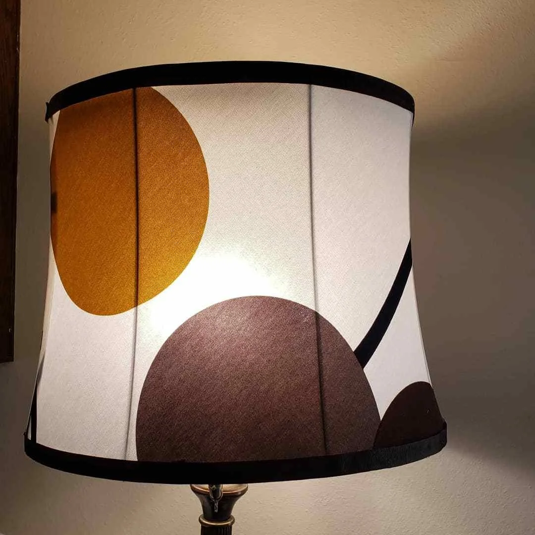 This is a 40+ year old lampshade frame from my Mother-in-law's basement. I recovered it with fabric from ACR and put it back in use in her house.