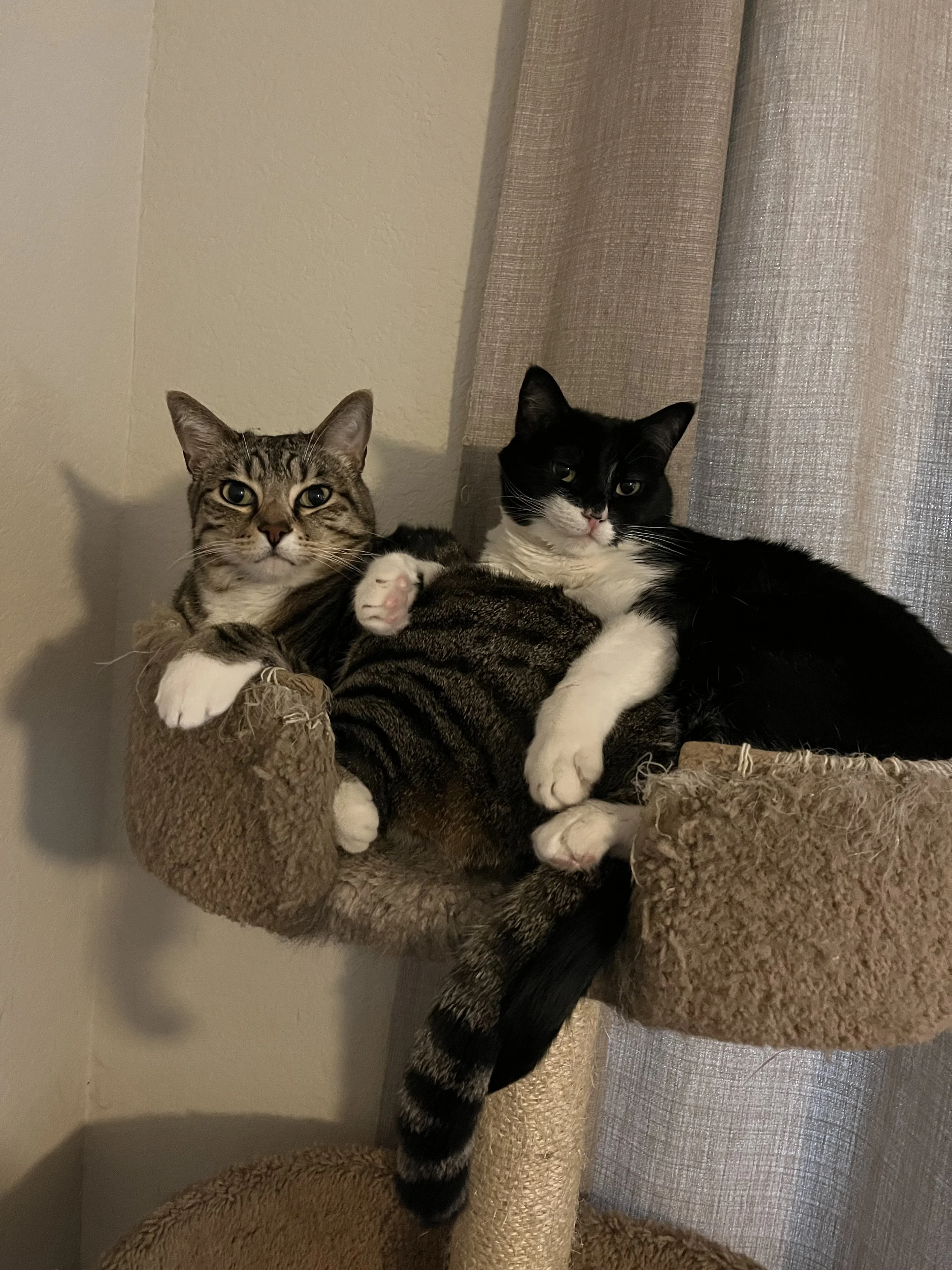 Yes, two cats - Andrew (a tabby) and Darlene (a tuxedo).